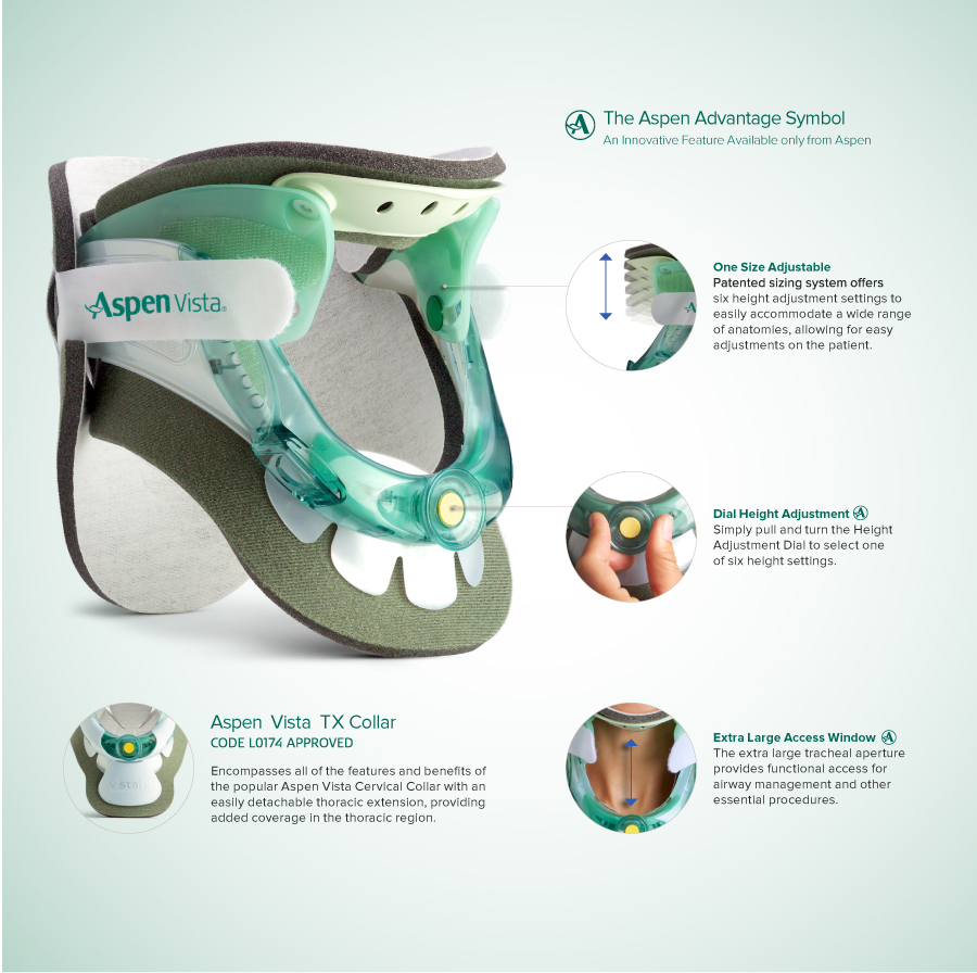 The Aspen Vista Collar provides superior cervical support with an adjustable height system for a customized fit. Its lightweight, breathable design ensures comfort during recovery from neck injuries or surgery.